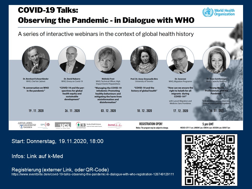 Im Rahmen des SPC Global Health organisiert FGMM-Mitglied Michael Knipper gemeinsam mit Kolleginnen und Kollegen anderer Universitäten (UC London und American University Beirut) sowie der WHO eine Gesprächsreihe für Studierende zu Covid-19.