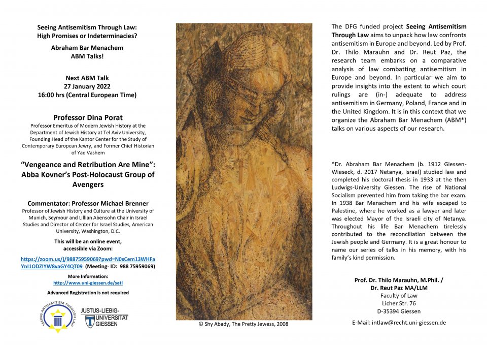 Im Rahmen der Vortragsreihe "Abraham Bar Menachem (ABM)-Talks" wird am Donnerstag, dem 27. Januar 2022 um 16:00 Uhr