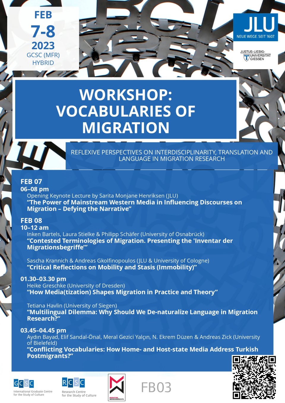 Mit einer Keynote von FMM-Mitglied Sarita Monjane Henriksen (DAAD Visiting Professor, JLU Department of Sociology) “The Power of Mainstream Western Media in Influencing Discourses on Migration – Defying the Narrative”.
