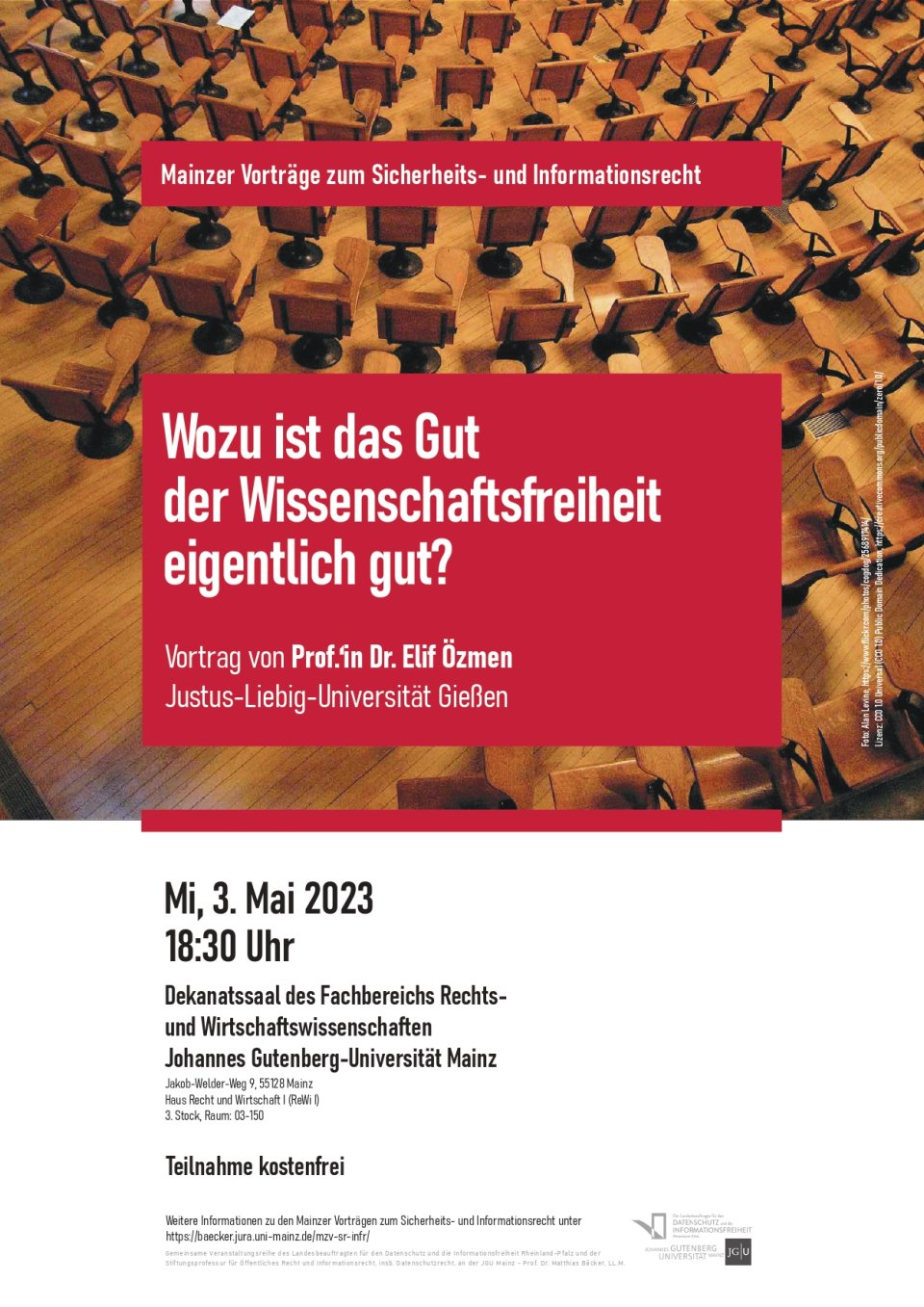 Herzliche Einladung zur nächsten Veranstaltung der Mainzer Vorträge zum Sicherheits- und Informationsrecht am Mittwoch, dem 3. Mai 2023, um 18:30 Uhr.